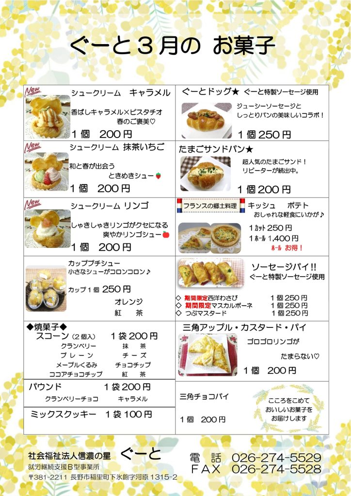 ぐーと 3月のお菓子のご紹介